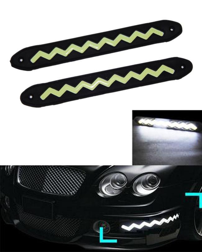 2 Pc - Flexible Bumper Car Daytime Running Light COB LED DRL For All Cars - Zigzag Design