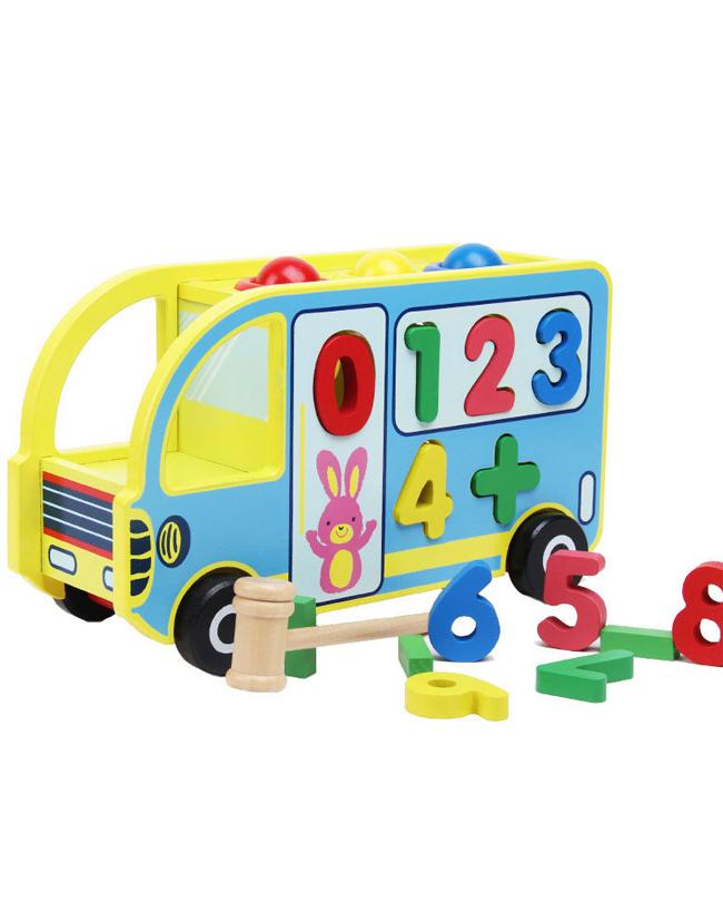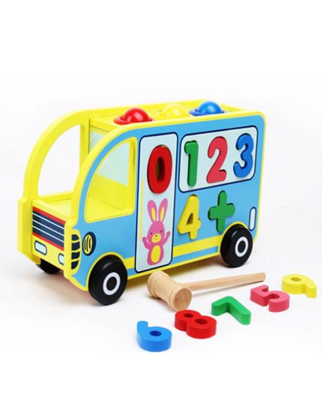 Knock The Ball Digital Bus Wooden Toys Early Learning Toy