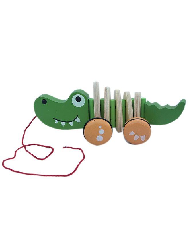 Wooden Crocodile Pull Cart Along With Wheel Paw Firmly Printed Harmless Pattern Toy For Kids.Encourages coordination skills, balance, and active play .Kids will love taking this silly pup on walks Quality wood craftsmanship sourced from sustainable forests Non-toxic finishes and child safe materials.size of this product is 11.5 inch length and 4.25 inch Height and 4.25 inch width. Size 11.5 inch x 4.25 inch x 4.25 inch